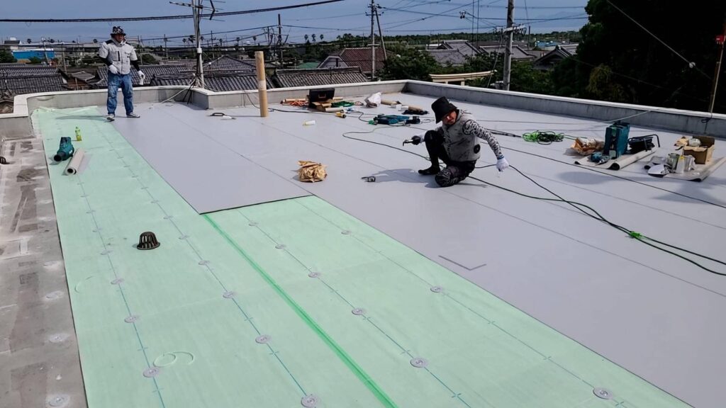 既存の防水を残しながら、環境に優れた耐候性の高いエンビシート防水の機械式固定工法を用いて、屋上防水の改修が可能です。